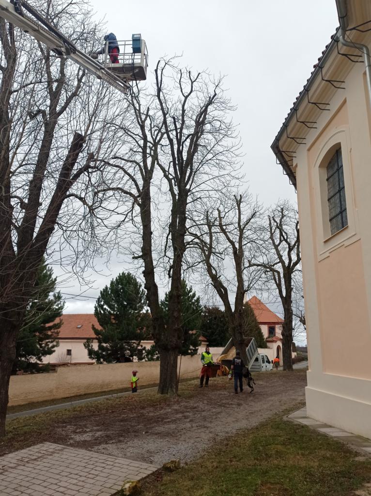 Jednalo se především o redukční řez jírovců podél kostela a kácení několika poškozených a neperspektivních stromů. Arboristé z firmy Prostrom dodrželi doporučení vyplívající z doporučení dendrologického průzkumu.