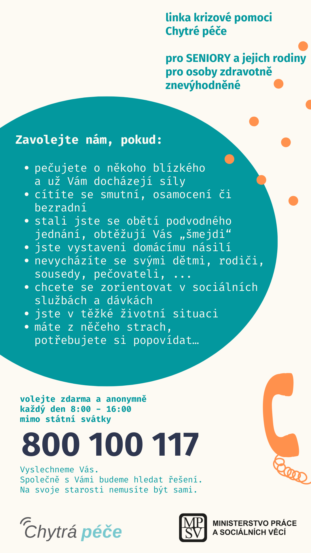 Linka krizové pomoci Chytrá péče – pro seniory a jejich rodinné příslušníky
